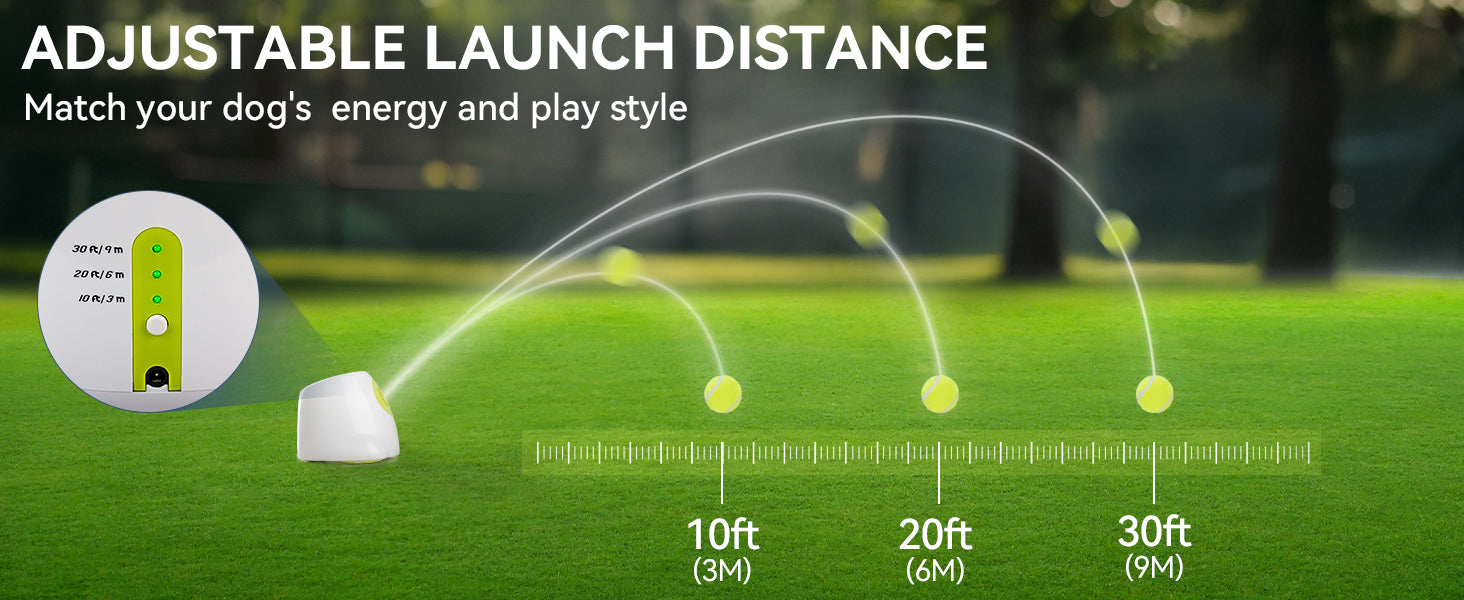 A: Yes — the launcher features three distance settings (3m, 6m, and 9m). You can easily switch between short indoor tosses and longer outdoor launches to suit your dog’s size, energy level, and play space.