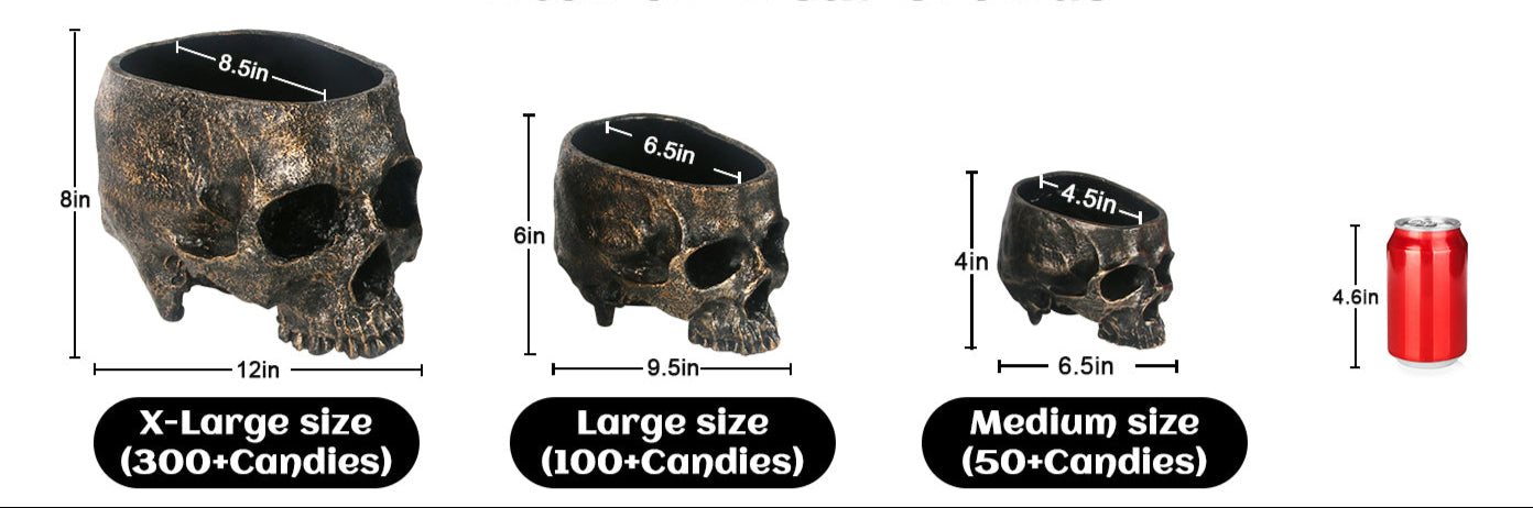 A: The Pack skull bowl is deep and roomy, easily holding 300+, 100, & 50 wrapped candies respectively That means fewer refills during trick-or-treat rush hours, and more time enjoying the spooky fun instead of constantly topping up.